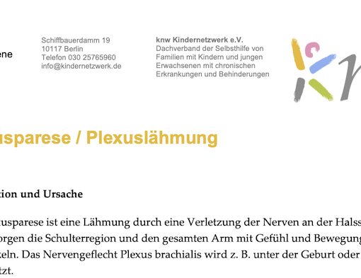 In Zusammenarbeit mit dem Kindernetzwerk e.V. haben wir eine kurze Krankheitsbeschreibung zur Plexusparese erstellt. Diese Beschreibung soll Eltern von betroffenen Kindern helfen, […]
