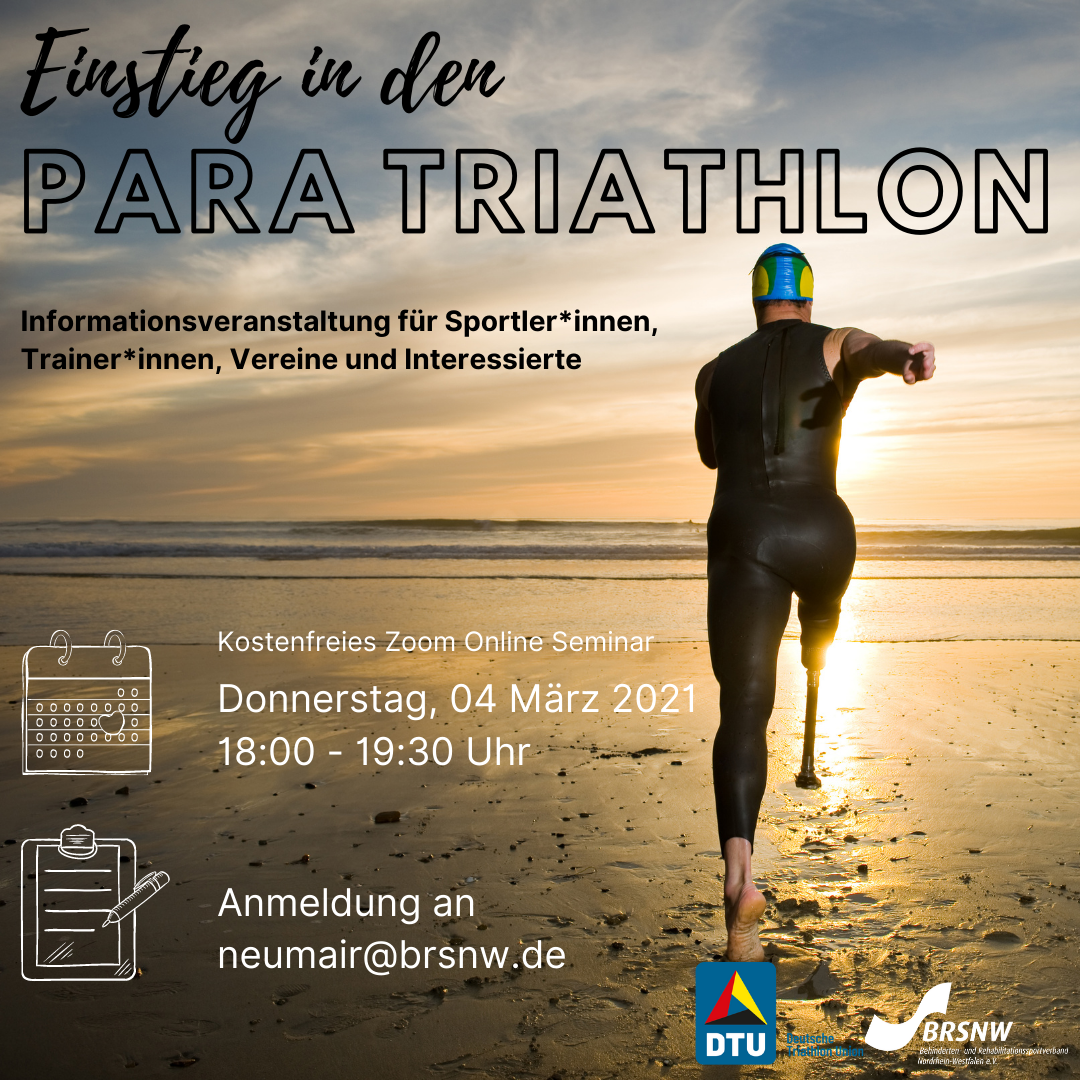 Einstieg in den Para Triathlon – ein Onlineseminar für Trainer*innen, Vereine, Familien und Interessierte am Donnerstag, 04.03.2021 von 18.00-19.30 Uhr