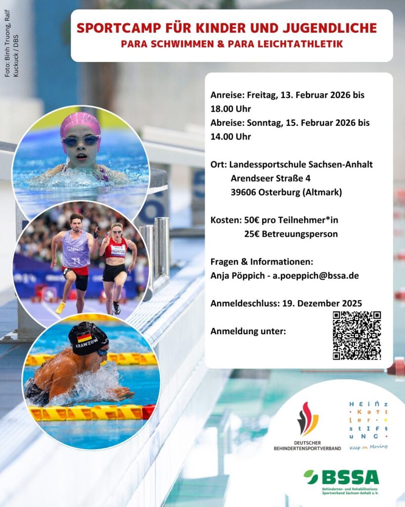 Para Schwimm- und Para Leichtathletikcamp – in Osterburg – 13.02. – 15.02.2026- Anmeldung: Para Schwimm & Para Leichtathletik – Camp für Kinder und Jugendliche – Formular ausfüllen