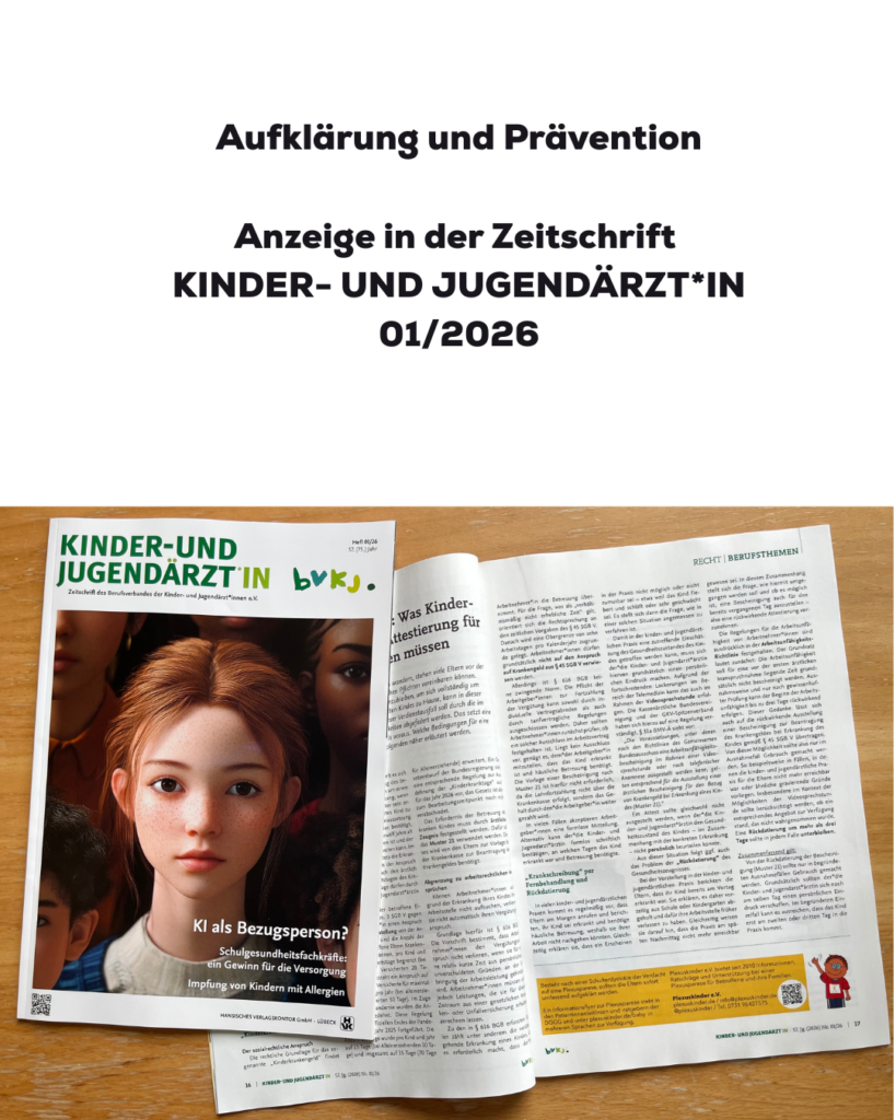 Aufklärung und Prävention: Anzeige in der Zeitschrift KINDER- UND JUGENDÄRZT*IN 01/2026