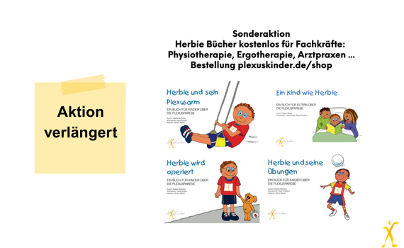 Helfen Sie über die Plexusparese und ihre Folgen aufzuklären und geben Sie Herbie an Ärzten und Therapeuten, Hebammen, Erziehungs-, Lehr- und Betreuungskräften und vor allem an betroffene Familien weiter.